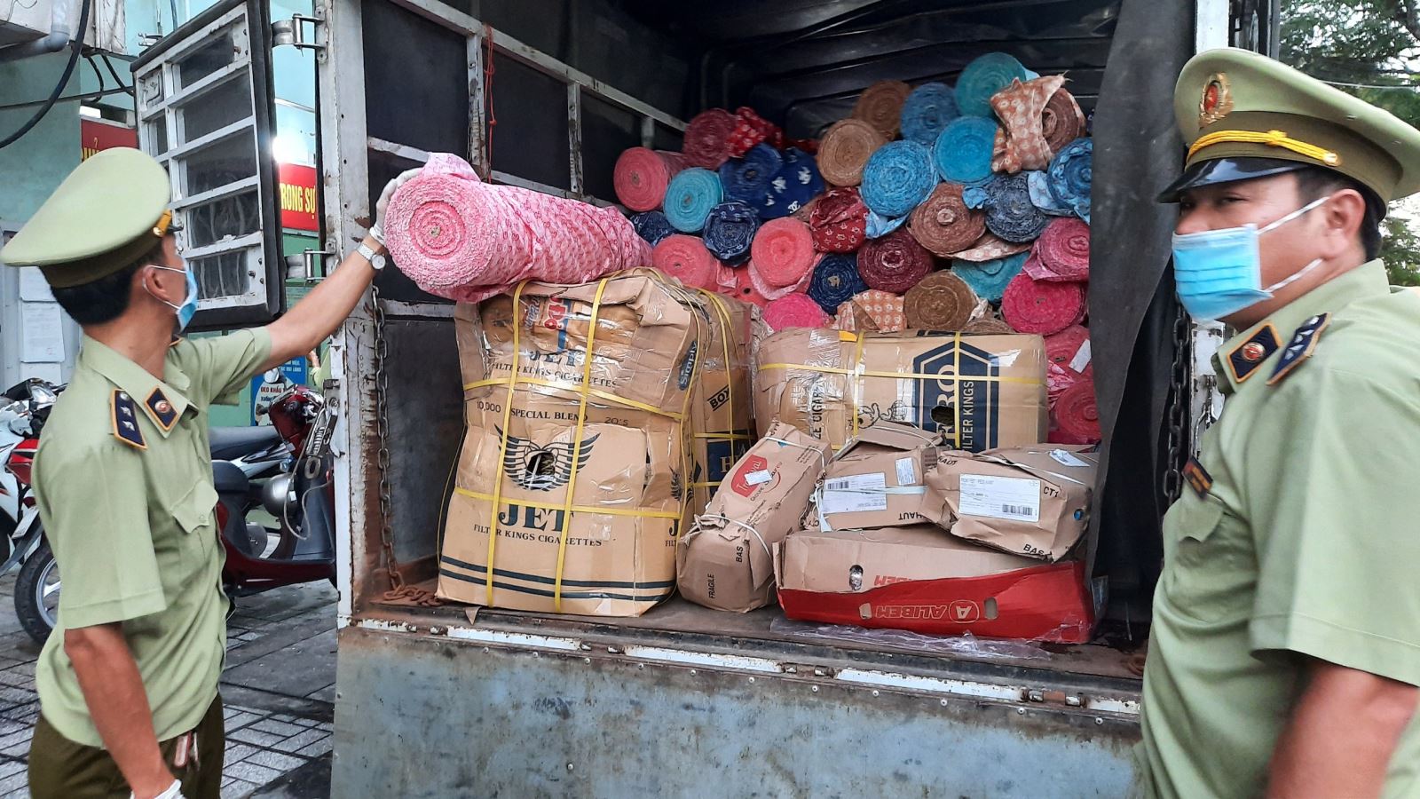 Qua kiểm tra thực tế, Đoàn kiểm tra phát hiện hàng hóa gồm: Chân lợn đông lạnh, xuất xứ Pháp, NSX: 04/12/2019 , HSD: 06/12/2020, số lượng 490 kg, không có hóa đơn chứng từ, Vải polyester pha K44-64 loại 24kg/cây, xuất xứ Trung Quốc có nhãn phụ kèm theo số lượng 310kg không có hóa đơn chứng từ, Vải polyester không có nhãn hàng hóa, chưa xác định được xuất xứ hàng hóa số lượng 1.108 kg có hóa đơn số 0000661 ngày 08/6/2020 kèm theo.