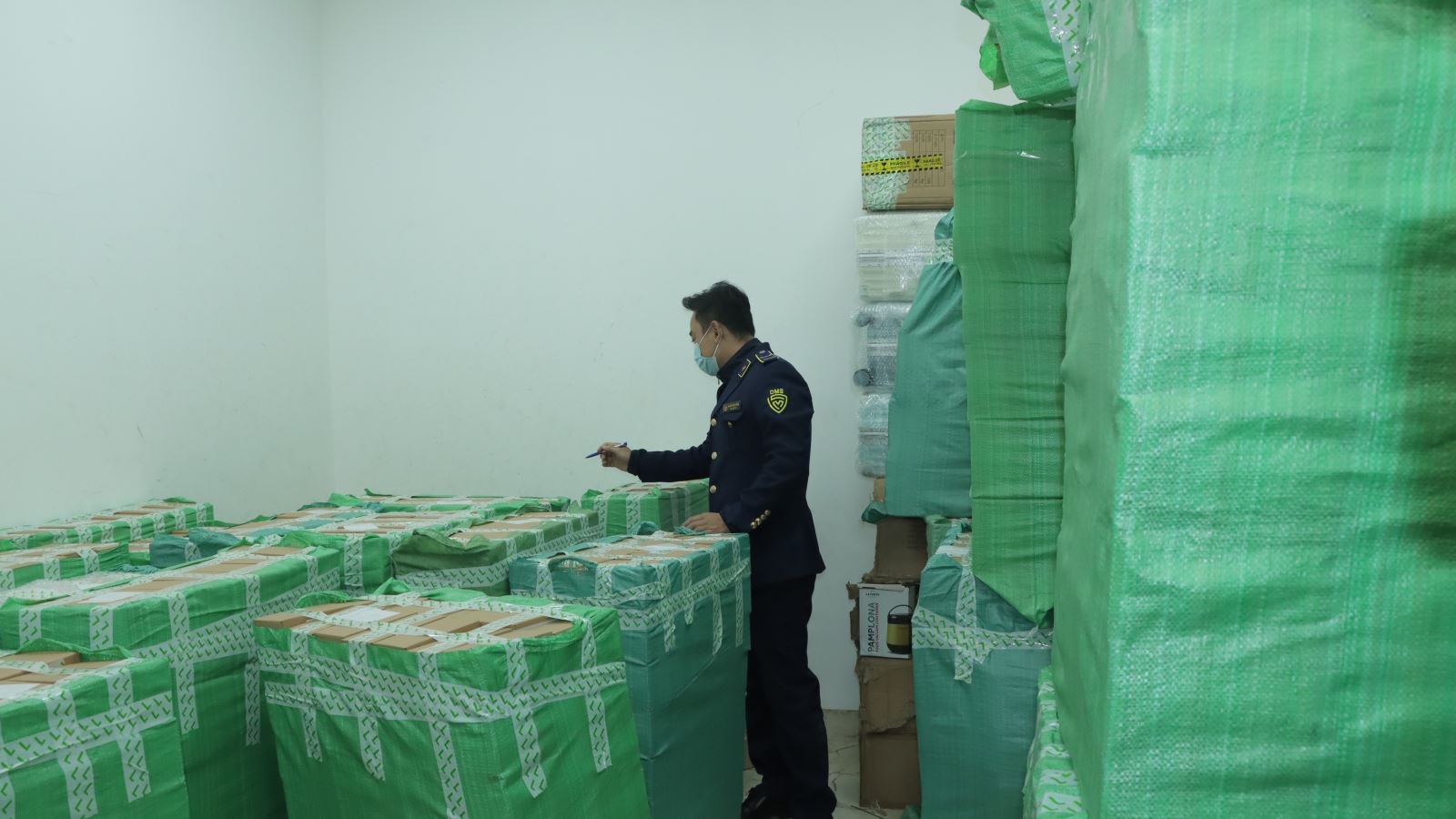 Hiện lực lượng chức năng đang tiến hành kiểm đếm, phân loại sản phẩm và liên hệ với chủ cơ sở để kiểm tra tính hợp pháp của hàng hóa tại kho hàng.