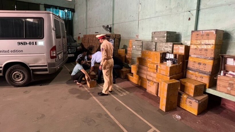 Lực lượng chức năng kiểm tra số hàng hóa vi phạm. Ảnh: Sức khoẻ & Đời sống.