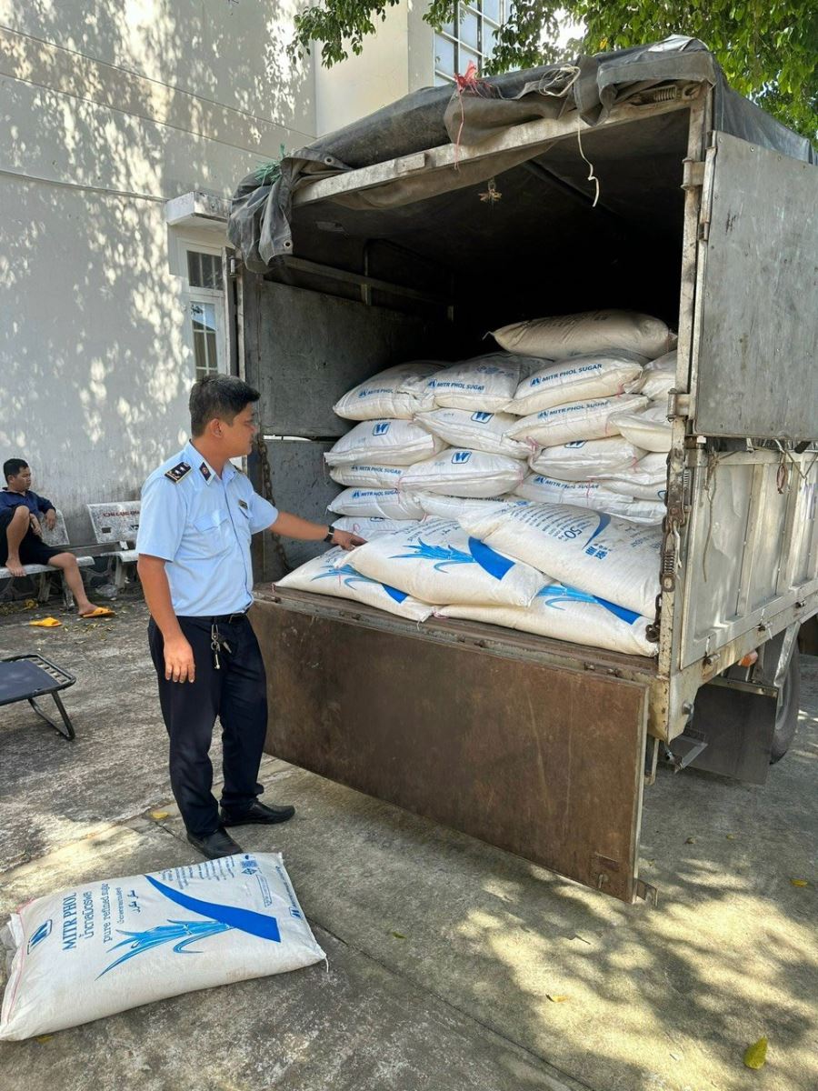 Tại thời điểm khám, Đoàn kiểm tra phát hiện ông Lê Văn T đang vận chuyển 6.400 kg đường cát trắng, xuất xứ Thái Lan không có hoá đơn, chứng từ chứng minh nguồn gốc xuất xứ hợp pháp.