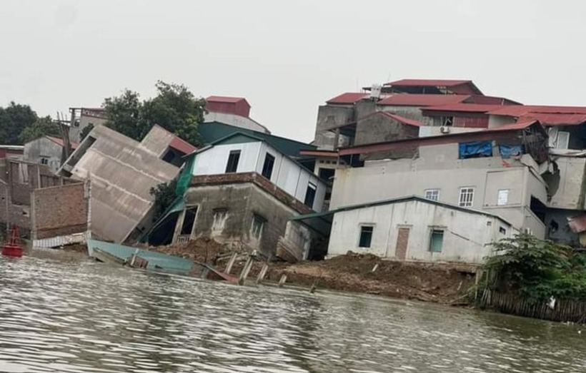 Thêm 6 ngôi nhà bị sạt lở xuống sông Cầu. Ảnh: Dân Trí