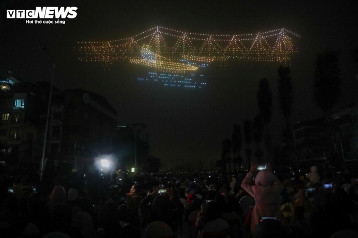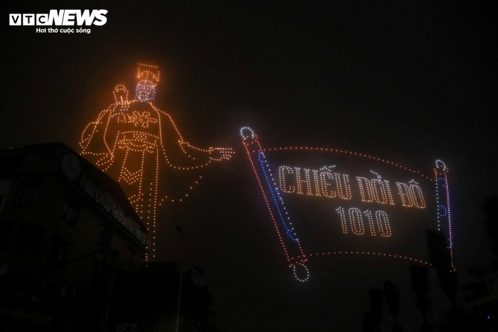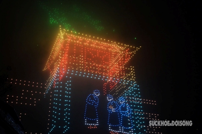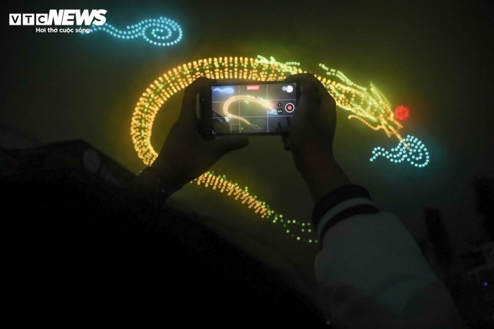 Hình Rồng thời Lý tạo bởi 2.024 thiết bị bay không người lái rực sáng trên bầu trời Hà Nội