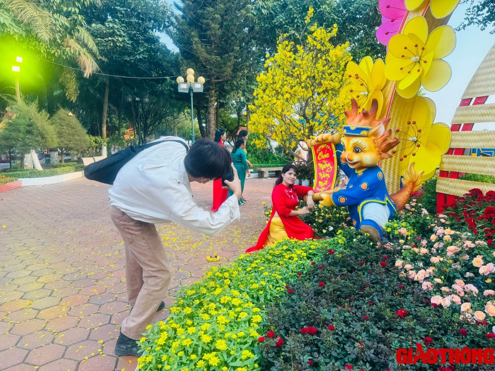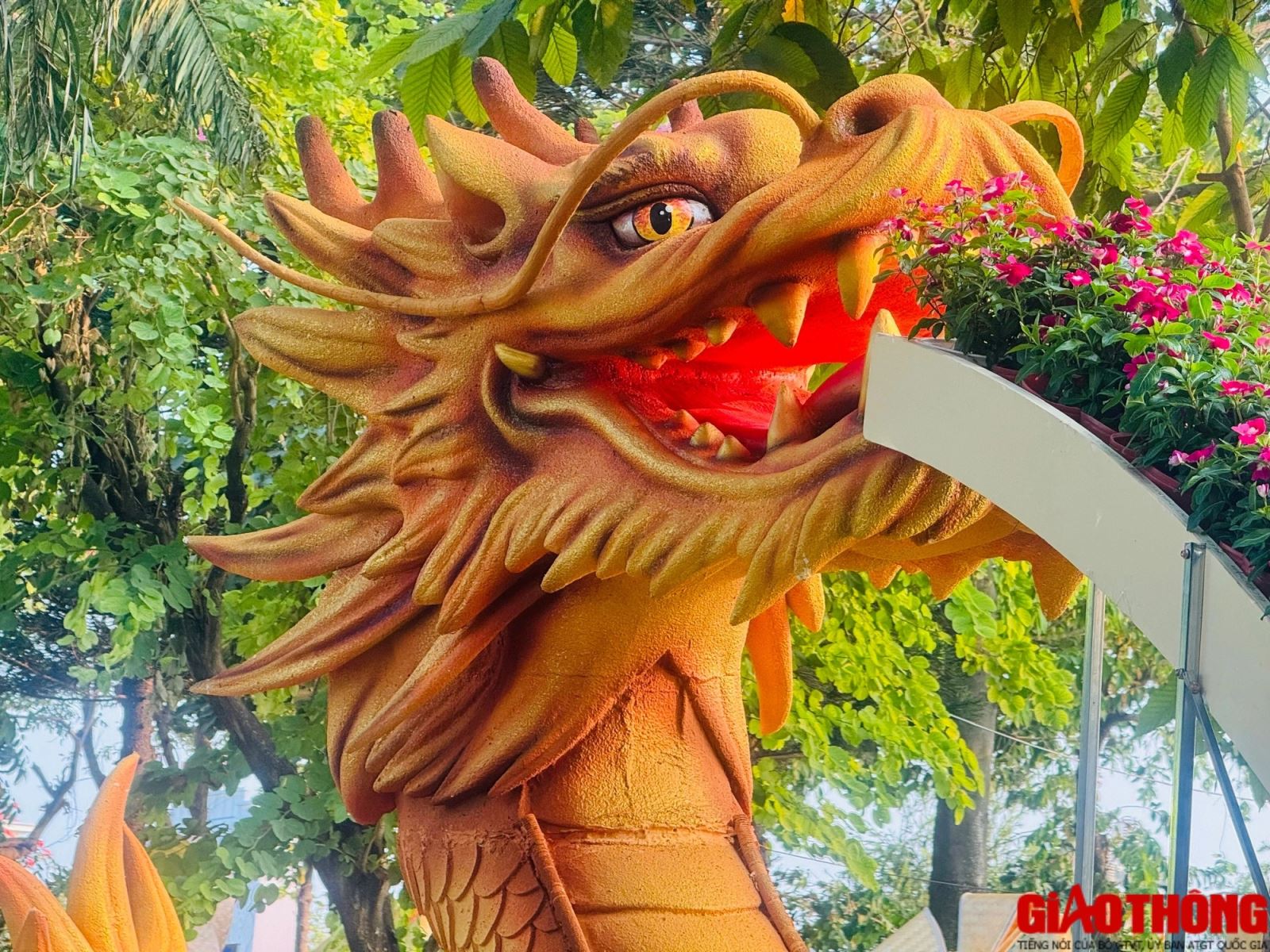 Trong đó, linh vật rồng của đường hoa Nguyễn Văn Trị có màu sắc rực rỡ, bắt mắt, đẹp, thu hút nhiều người dân đến chiêm ngưỡng, chụp hình lưu niệm. Một số khu vực còn có hình rồng phun hoa tạo thành một dải hoa tuyệt đẹp.